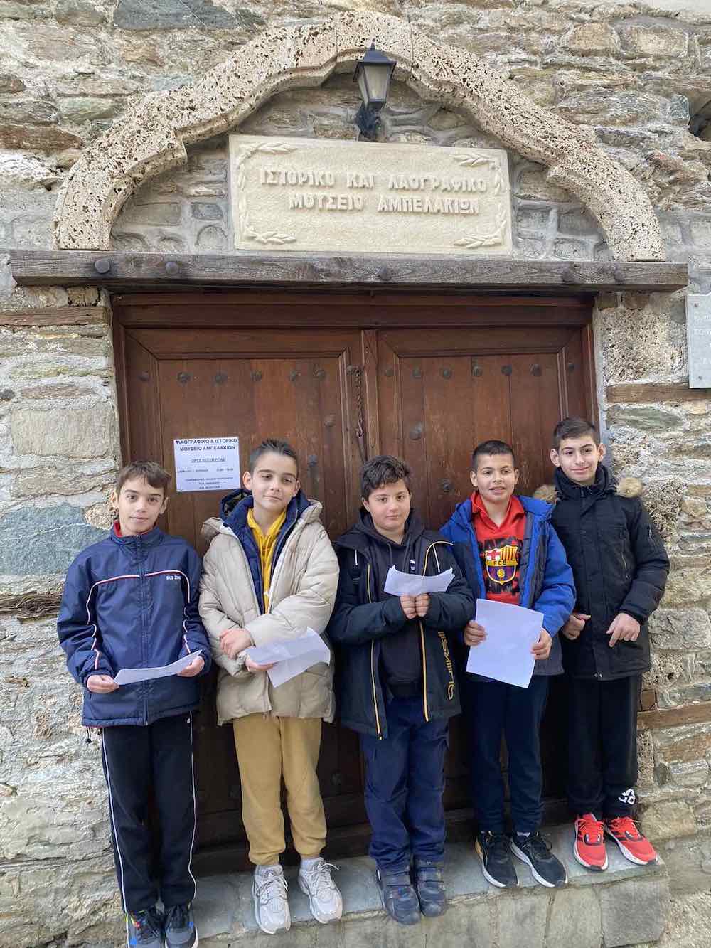 Tην Παρασκευή 16 Φεβρουαρίου 2024 στο πλαίσιο του μαθήματος της Ιστορίας και των Εργαστηρίων Δεξιοτήτων της 2ης Θεματικής Ενότητας «Φροντίζω το περιβάλλον» και της 3ης Υποθεματικής Ενότητας «Παγκόσμια και τοπική πολιτιστική κληρονομιά» οι μαθητές και οι μαθήτριες της Στ΄ Τάξης πραγματοποίησαν εκπαιδευτική εκδρομή στα Αμπελάκια.