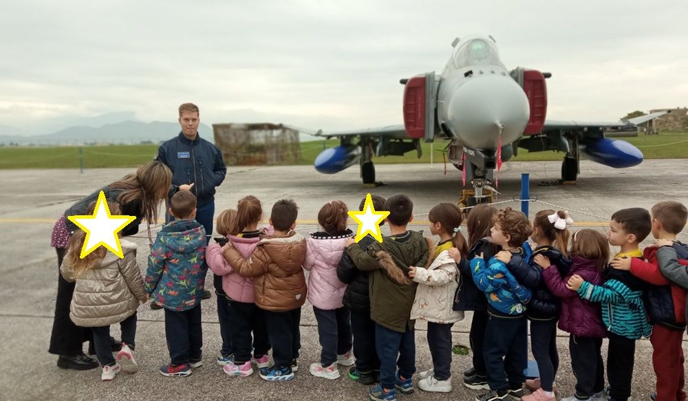 Οι μικροί/ές μαθητές/τριες των Τμημάτων των Νηπίων και Προνηπίων επισκέφτηκαν την 110 Πτέρυγα Μάχης στο αεροδρόμιο της Λάρισας. Τα παιδιά είχαν την ευκαιρία να παρατηρήσουν και να θαυμάσουν από κοντά τα πολεμικά αεροπλάνα και τον εξοπλισμό τους.