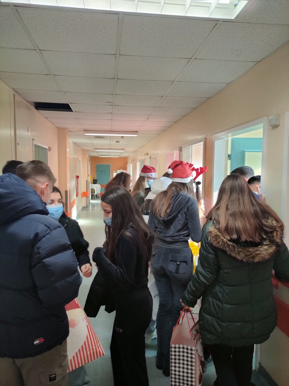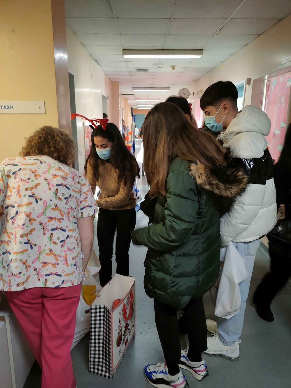 Στο πλαίσιο του μαθήματος των θρησκευτικών και ενόψει των Χριστουγέννων μαθητές της Α Λύκειου επισκέφθηκαν το Πανεπιστημιακό Γενικό Νοσοκομείο της πόλης μας. Μέσα σε κλίμα συγκίνησης και χαράς οι μαθητές είχαν την δυνατότητα να εκφράσουν την ανιδιοτελή αγάπη στα μικρά παιδιά που νοσηλεύονται στην παιδιατρική μονάδα. Προσέφεραν δώρα , ευτυχισμένες στιγμές και ευχές για γρήγορη ανάρρωση εφαρμόζοντας έτσι στην πράξη τις αρετές της ενσυναίσθησης και της προσφοράς στον πλησίον που διδάσκει ο λόγος του Ευαγγελίου.