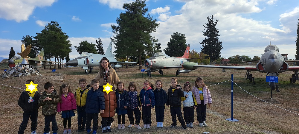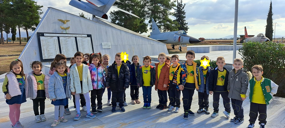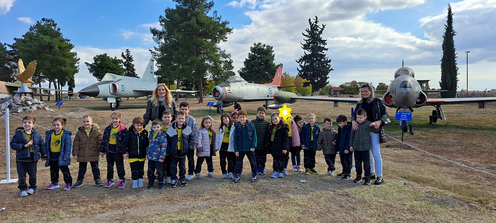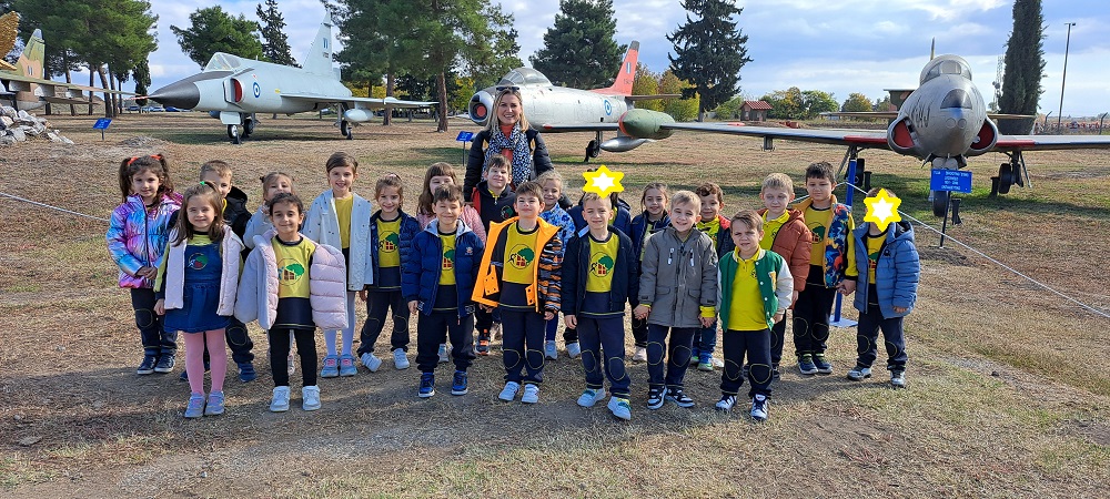 Με αφορμή τον εορτασμό των Αρχαγγέλων Μιχαήλ και Γαβριήλ (8/11), προστατών της Πολεμικής Αεροπορίας, τα τμήματα των Νηπίων και Προνηπίων του Σχολείου μας επισκέφθηκαν το Αεροδρόμιο στην 110 Πτέρυγα Μάχης της πόλης μας. Οι μικροί/ες μαθητές/τριες ξεναγήθηκαν στον χώρο της έκθεσης και είχαν την ευκαιρία να θαυμάσουν από κοντά τα πολεμικά αεροσκάφη.