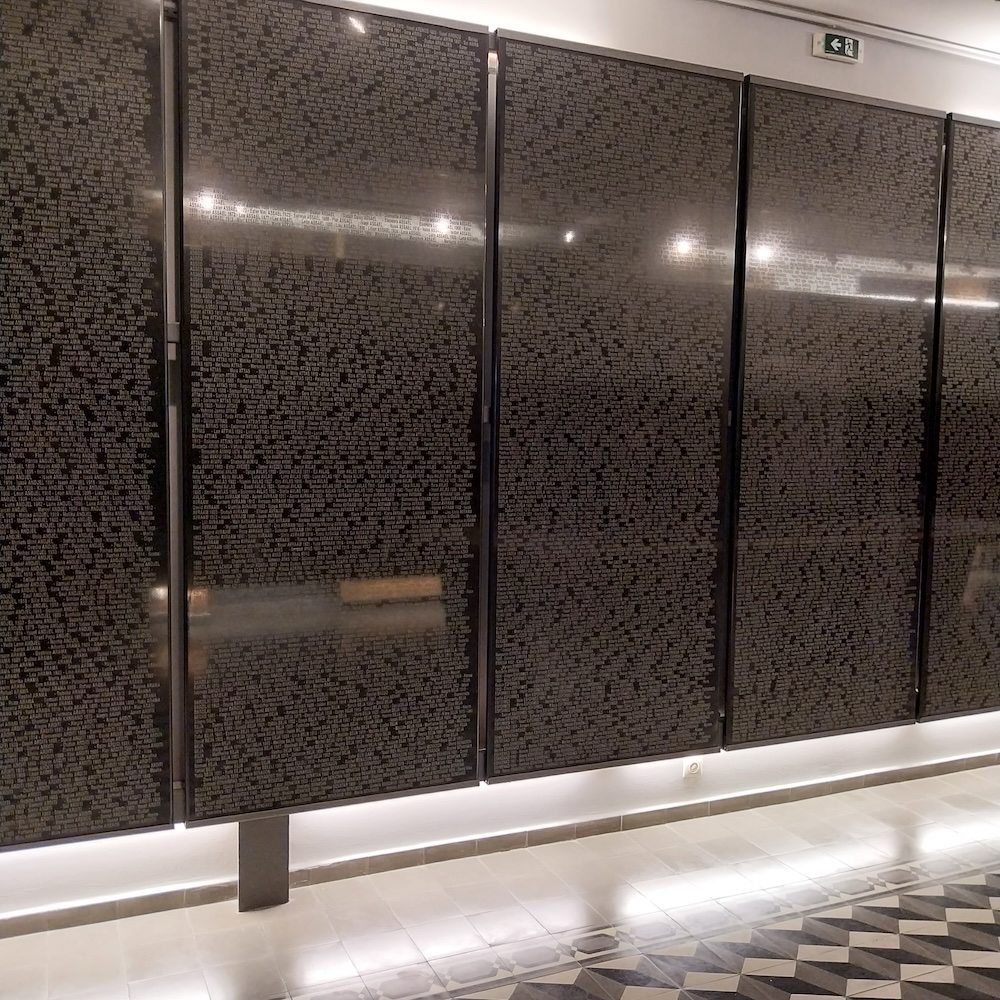 Τα ονόματα των θυμάτων αναγράφονται στους τοίχους του μουσείου. Στα εκθέματα περιλαμβάνονται φωτογραφίες, ταυτότητες, ακόμη και προσωπικά αντικείμενα από το στρατόπεδο του Άουσβιτς όπως στολές, κουτάλια κ. α.