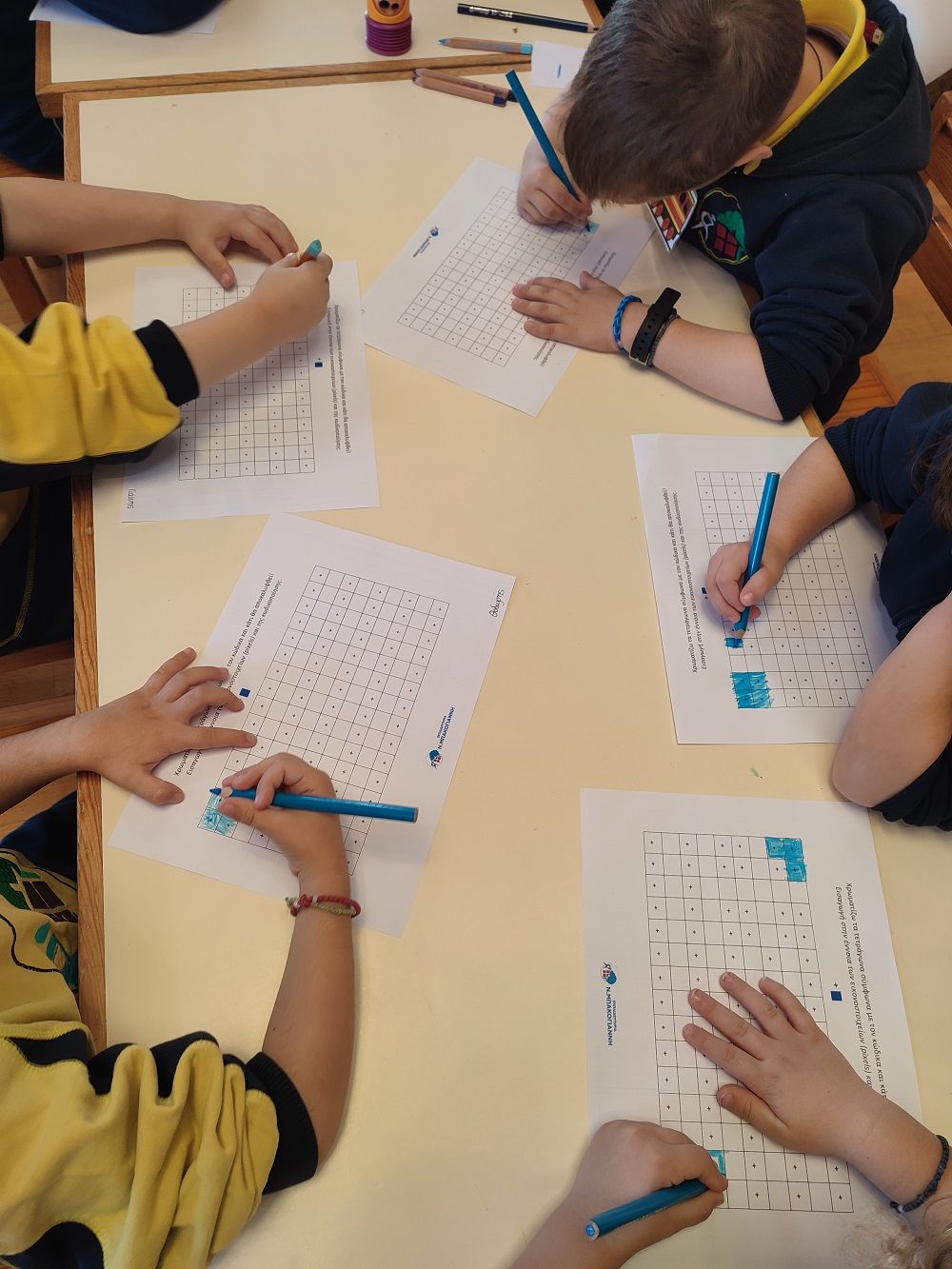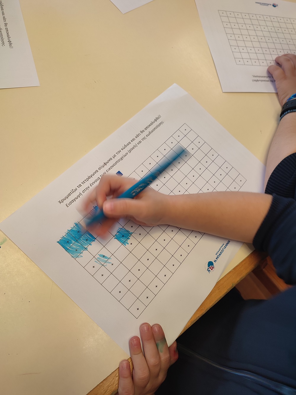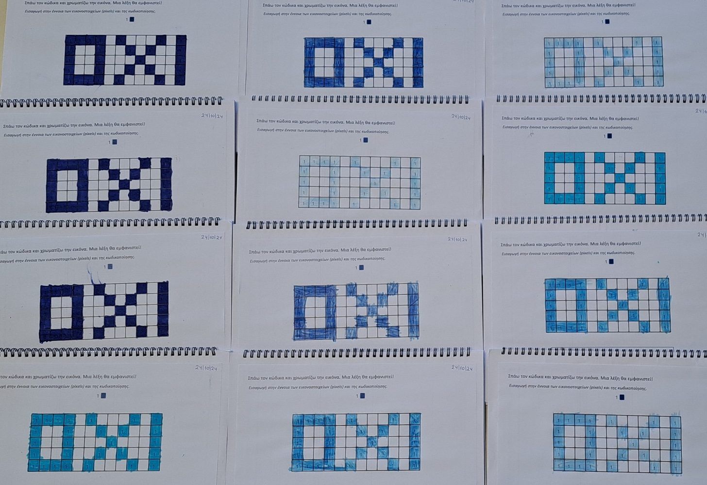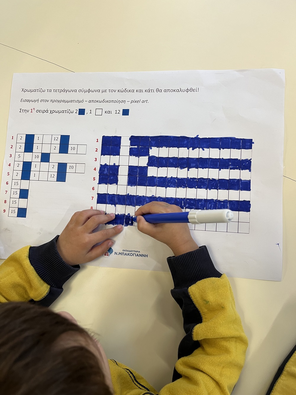 Ειδικότερα, τα παιδιά ασχολήθηκαν με δραστηριότητες κωδικοποίησης/ αποκρυπτογράφησης και συγκεκριμένα με pixel art, μια μορφή τέχνης, όπου σχηματίσαμε εικόνες γεμίζοντας pixel-τετράγωνα. Επιπλέον, νήπια και προνήπια διδάχθηκαν βασικές αρχές προγραμματισμού παίζοντας επιδαπέδια παιχνίδια κώδικα (unplugged), κατά τη διάρκεια των οποίων ολοκλήρωσαν μια διαδρομή ακολουθώντας βασικές εντολές προγραμματισμού (μπροστά, πίσω, στρίβω αριστερά, στρίβω δεξιά) και συγκεκριμένες οδηγίες. Η εισαγωγή των μικρών μαθητών/τριών μας στον προγραμματισμό ξεκίνησε και έπεται συνέχεια!