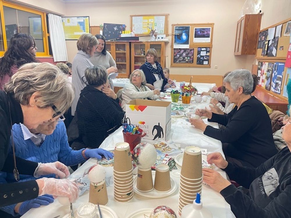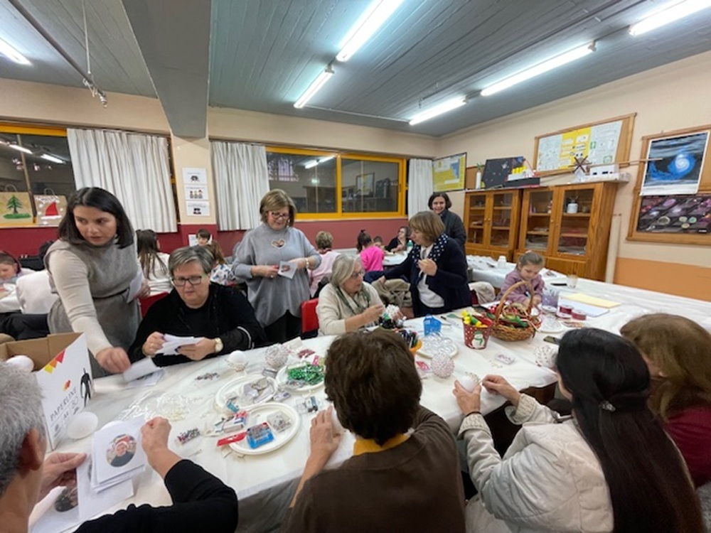 Ένα πολύ όμορφο απόγευμα γεμάτο δημιουργικότητα και χαρά μοιράστηκαν οι γιαγιάδες μαθητών/τριών όλων των τάξεων του Δημοτικού. Είχαν την ευκαιρία να συναντηθούν και με τη σύμπραξη των εκπαιδευτικών να δημιουργήσουν χριστουγεννιάτικα αναμνηστικά δώρα για τα εγγόνια τους. Οι ίδιες είχαν την ευκαιρία να γνωριστούν καλύτερα και να μοιραστούν εμπειρίες από τον ρόλο της γιαγιάς, ο οποίος, όπως οι ίδιες ομολογούν, αποτελεί τον πιο γλυκό και απολαυστικό ρόλο που έχουν κληθεί να παίξουν στη ζωή τους. Εκτός από αναμνηστικά δώρα για τα εγγόνια τους έφτιαξαν και γλυκίσματα, τα οπoία θα πωληθούν στο μεγάλο φιλανθρωπικό Bazaar το Σάββατο, 13 Δεκεμβρίου, από ώρα 3:00 μμ ως 8:00 μμ στις εγκαταστάσεις του Δημοτικού Σχολείου των Εκπαιδευτηρίων μας.