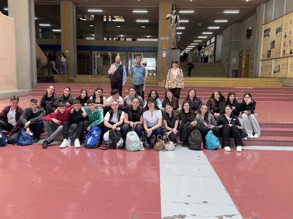 Στο πλαίσιο της επίσκεψής τους, οι συμμετέχοντες είχαν την ευκαιρία να ξεναγηθούν στη Βιβλιοθήκη της Φιλοσοφικής Σχολής, όπου ήρθαν σε επαφή με πολύτιμο ακαδημαϊκό υλικό και γνώρισαν από κοντά τον πλούτο της πανεπιστημιακής γνώσης. Η εμπειρία αυτή ενίσχυσε τη σύνδεσή τους με τον χώρο των ανθρωπιστικών σπουδών και ανέδειξε τη σημασία της έρευνας και της μελέτης.