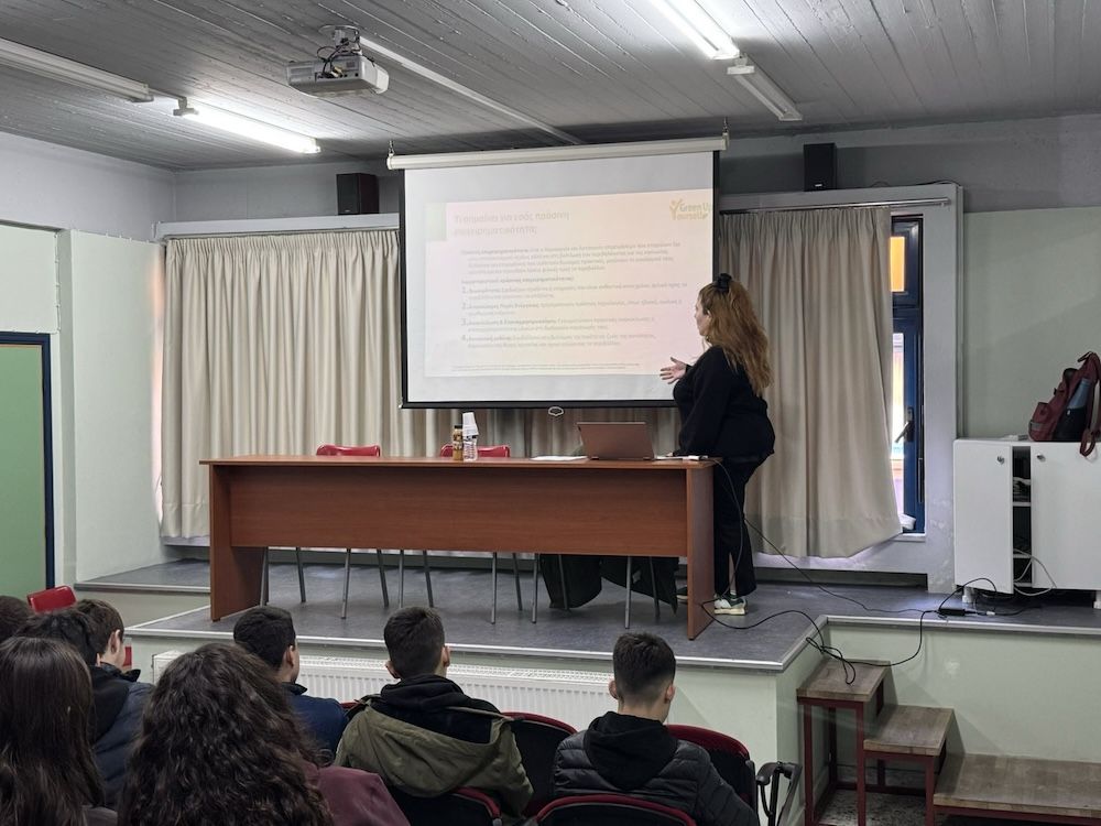 Ειδικότερα, οι μαθητές της Α’ Λυκείου είχαν την ευκαιρία να έρθουν δημιουργικά σε επαφή με την έννοια “πράσινη επιχειρηματικότητα”, καθώς μέσω του γόνιμου και εποικοδομητικού διαλόγου με την υπεύθυνη ανακάλυψαν τρόπους συντήρησης μιας επιχείρησης ιδιαίτερα φιλικούς προς το περιβάλλον. Παράλληλα, έθιξαν το μείζον πρόβλημα της οικολογικής καταστροφής, εγείροντας ερωτήματα για το πώς είναι δυνατό να διατηρήσουμε το περιβάλλον υγιές και δίχως ρύπους. Τέλος, μέσα από διαφάνειες που προβλήθηκαν, αντιλήφθηκαν πως οι εναλλακτικές εξοικονόμησης ενέργειας ποικίλλουν και πως ο καθένας ξεχωριστά μπορεί να υιοθετήσει αυτές τις πρακτικές με σκοπό την παράταση ζωής του πλανήτη.