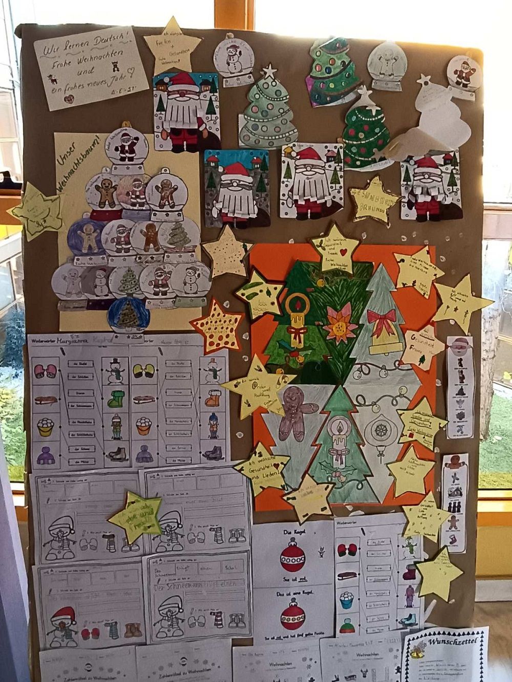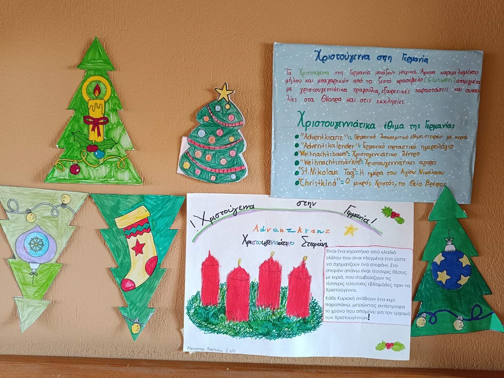 Τελευταία εβδομάδα του έτους και οι μαθητές και οι μαθήτριες της Δ’, της Ε’ και της ΣΤ’ Τάξης του Δημοτικού Σχολείου των Εκπαιδευτηρίων μας είχαν τη χαρά να κάνουν χριστουγεννιάτικες κατασκευές στο μάθημα των Γαλλικών και των Γερμανικών. Έφτιαξαν κάρτες, έγραψαν γράμμα στο Άγιο Βασίλη και αντάλλαξαν ευχές για τις επικείμενες γιορτινές μέρες στη γαλλική και στη γερμανική γλώσσα! Τέλος, με πολύ κέφι και χαρούμενη διάθεση στόλισαν τους πίνακες της Β’ Ξένης Γλώσσας που βρίσκονται στην κεντρική σάλα του Σχολείου και διακοσμούν τον χώρο, για να μας εμπνεύσουν και να μας ενθουσιάσουν για τις διακοπές των Χριστουγέννων!