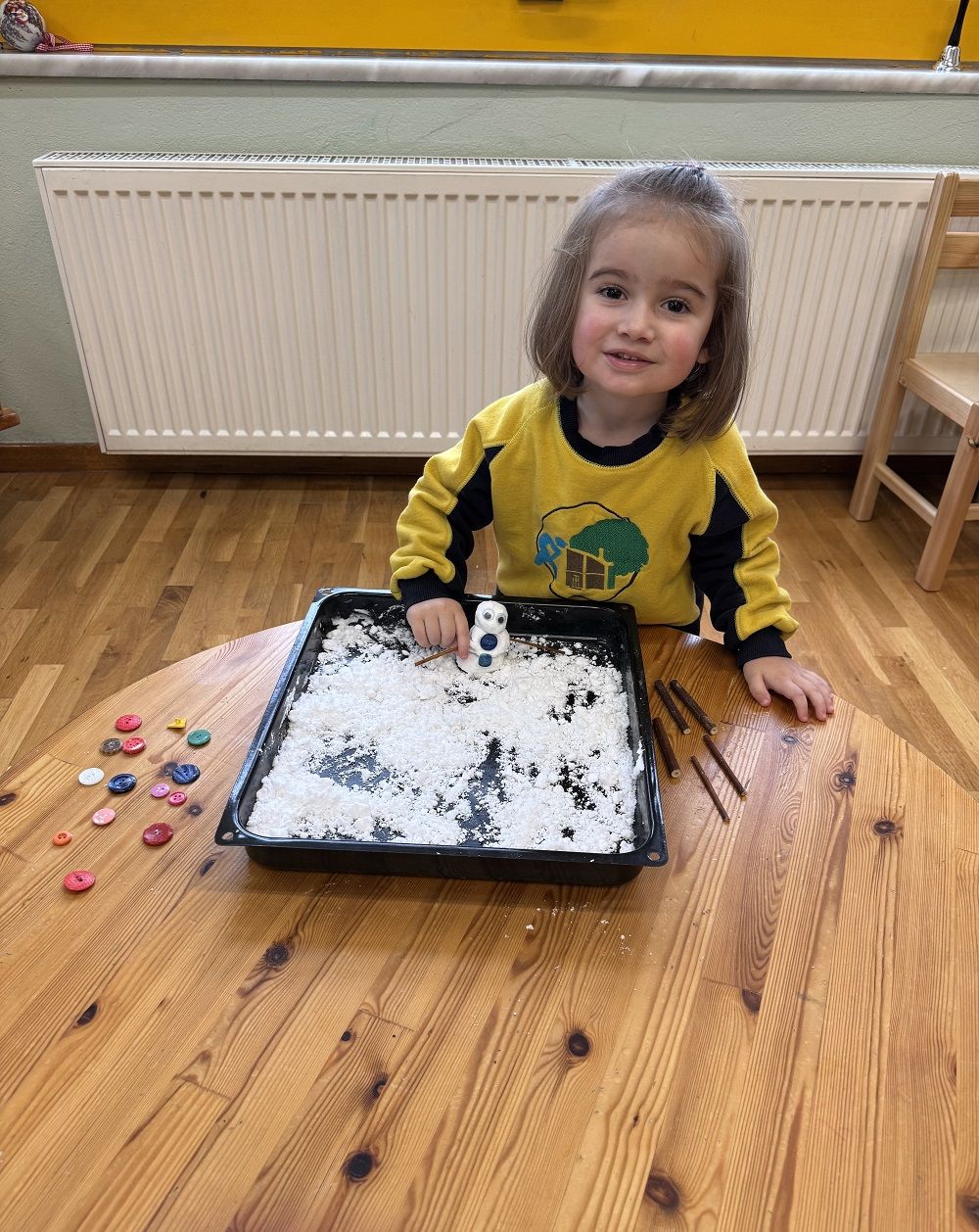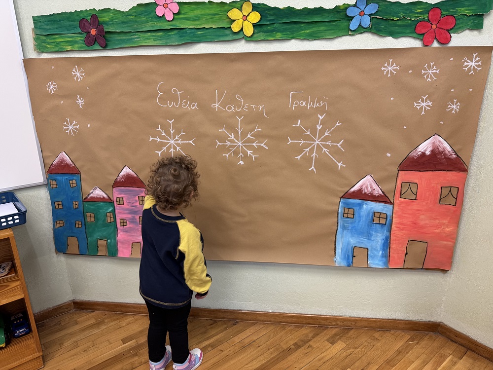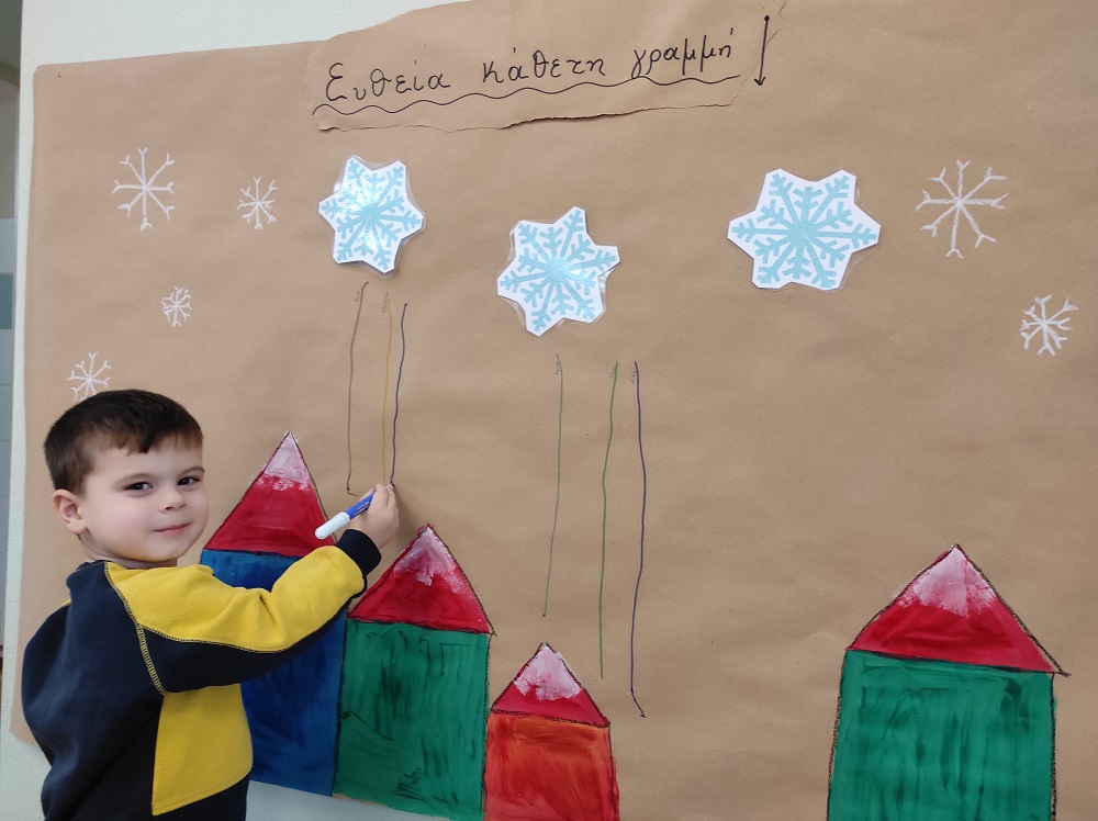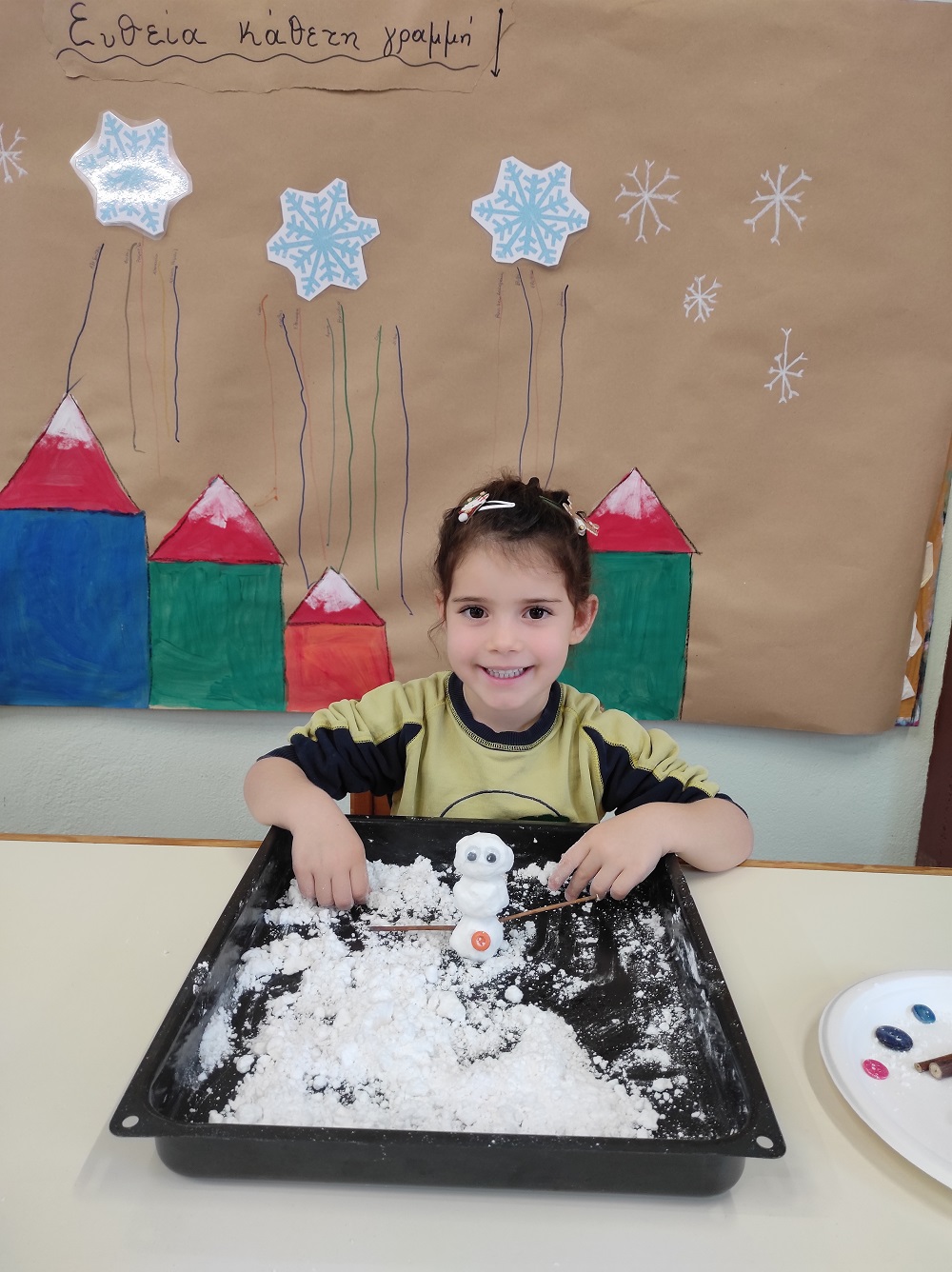 Τα τμήματα του Παιδικού Σταθμού υποδέχτηκαν τον χειμώνα  με χαρά και μέσα από ποικίλες δράσεις και βιωματικά παιχνίδια οι μικρόι/ ές μαθητές/τριες αντιλήφθηκαν τις αλλαγές που επιφέρει ο χειμώνας. Πιο αναλυτικά, γνώρισαν μέσω του διαδραστικού πίνακα τις εναλλαγές του καιρού, τους μήνες, τα ρούχα που χρησιμοποιούμε τον χειμώνα αλλά και την έννοια της χειμερίας νάρκης της φύσης και των ζώων. Γεύτηκαν χειμερινά φρούτα, εξάσκησαν τη λεπτή κινητικότητα «ταΐζοντας» χιονάνθρωπο, βοηθώντας τη χιονονιφάδα να φτάσει στην γη με την ευθεία κάθετη γραμμή αλλά και παίζοντας στο παγοδρόμιο. Δημιούργησαν χιόνι με μαγειρική σόδα και αφρό ξυρίσματος και στη συνέχεια κατασκεύασαν  το δικό τους  χιονάνθρωπο. Μεταμορφώθηκαν σε μικούς Πικάσο σχεδιάζοντας πολική αρκούδα. Δοκίμασαν τις ικανότητές τους στο σκι και αντιστοίχισαν πιγκουινάκια με ψαράκια βάσει χρώματος. Από αυτό το «ταξίδι» αντιλήφθηκαν τη μοναδικότητα και την ομορφιά του χειμώνα.