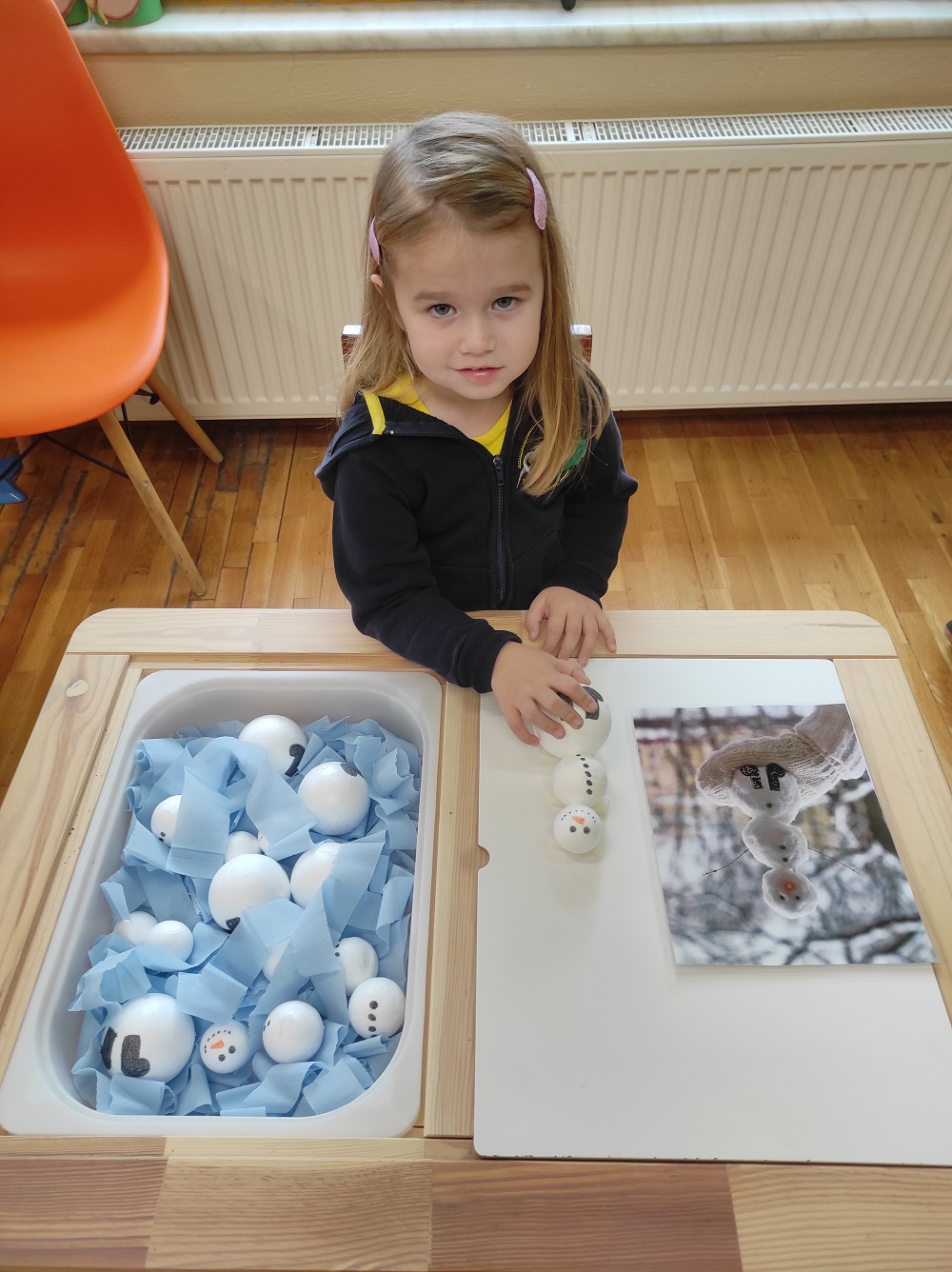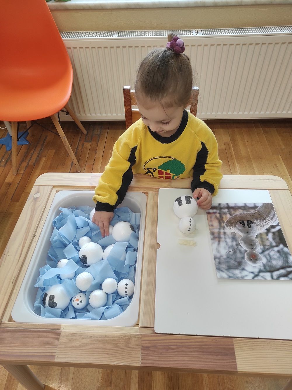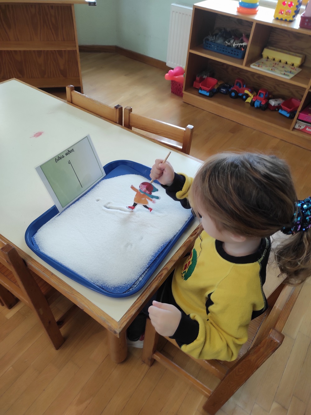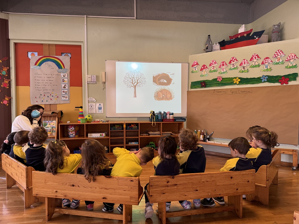 Τα τμήματα του Παιδικού Σταθμού υποδέχτηκαν τον χειμώνα  με χαρά και μέσα από ποικίλες δράσεις και βιωματικά παιχνίδια οι μικρόι/ ές μαθητές/τριες αντιλήφθηκαν τις αλλαγές που επιφέρει ο χειμώνας. Πιο αναλυτικά, γνώρισαν μέσω του διαδραστικού πίνακα τις εναλλαγές του καιρού, τους μήνες, τα ρούχα που χρησιμοποιούμε τον χειμώνα αλλά και την έννοια της χειμερίας νάρκης της φύσης και των ζώων. Γεύτηκαν χειμερινά φρούτα, εξάσκησαν τη λεπτή κινητικότητα «ταΐζοντας» χιονάνθρωπο, βοηθώντας τη χιονονιφάδα να φτάσει στην γη με την ευθεία κάθετη γραμμή αλλά και παίζοντας στο παγοδρόμιο. Δημιούργησαν χιόνι με μαγειρική σόδα και αφρό ξυρίσματος και στη συνέχεια κατασκεύασαν  το δικό τους  χιονάνθρωπο. Μεταμορφώθηκαν σε μικούς Πικάσο σχεδιάζοντας πολική αρκούδα. Δοκίμασαν τις ικανότητές τους στο σκι και αντιστοίχισαν πιγκουινάκια με ψαράκια βάσει χρώματος. Από αυτό το «ταξίδι» αντιλήφθηκαν τη μοναδικότητα και την ομορφιά του χειμώνα.