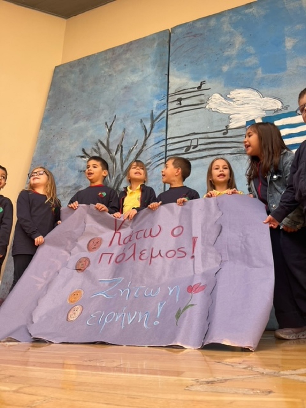 Το παραμύθι με τίτλο «1 και επτά» του Τζιάνι Ροντάρι έγινε αφορμή, ώστε τα παιδιά να εμβαθύνουν στο θέμα της ειρήνης και να δημιουργήσουν με οδηγό τη φαντασία τους παραμύθια αφιερωμένα σ’ αυτή. Έμαθαν, επίσης, πώς δημιουργήθηκε το εθνικό μας σύμβολο, η Σημαία μας. Στη συνέχεια, υποδύθηκαν ρόλους και παρουσίασαν στους/στις συμμαθητές/τριές τους δράσεις και τραγούδια,τα οποία ετοίμασαν με τις δασκάλες τους.