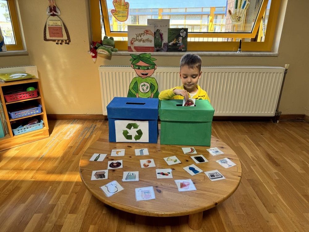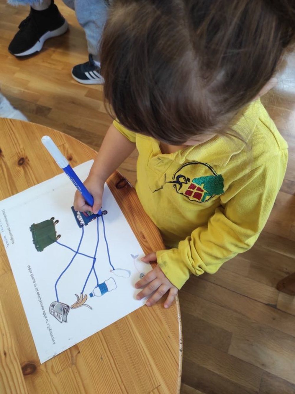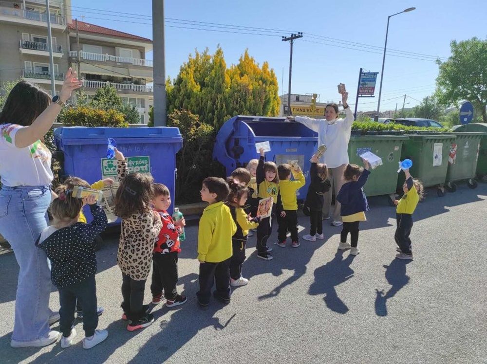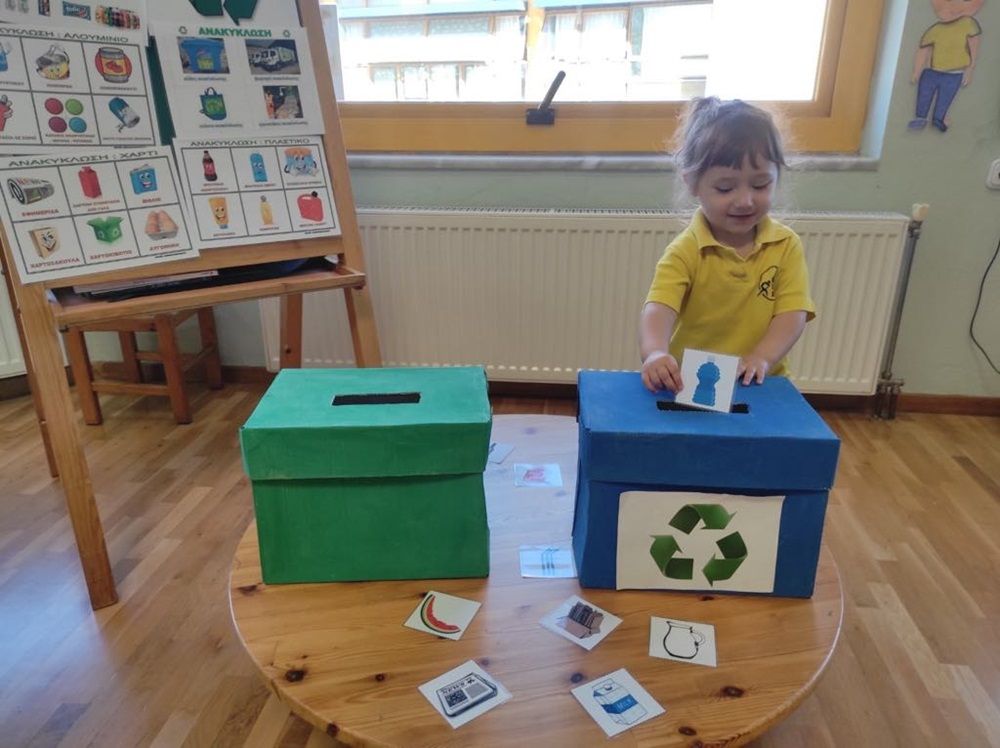 Με αφορμή τη θεματική ενότητα «Ανακύκλωση- Προστατεύω το Περιβάλλον» οι μαθητές και οι μαθήτριες του Παιδικού Σταθμού ήρθαν σε επαφή με την έννοια της ανακύκλωσης και τη σπουδαιότητα της για τη ζωή μας και τη βιωσιμότητα στον Πλανήτη μας. Οι μικροί μαθητές γνώρισαν τα «χρήσιμα σκουπίδια», αλουμίνιο, γυαλί, πλαστικό, χαρτί και τα έριξαν στον μπλε κάδο, για να ξεκινήσει το ταξίδι της ανακύκλωσης.