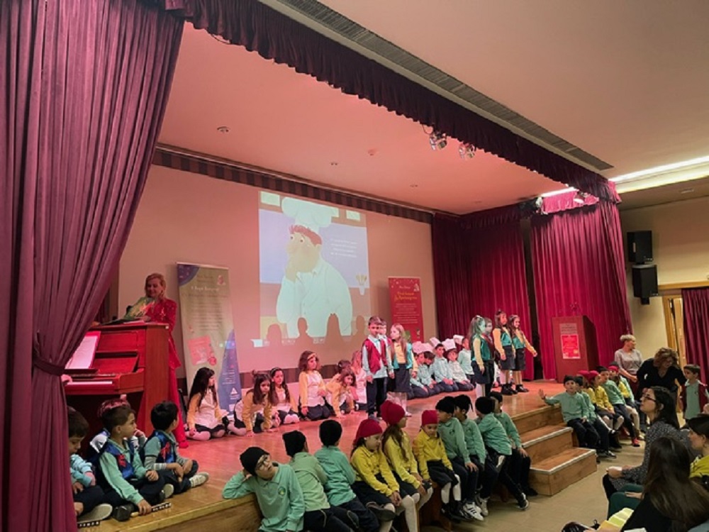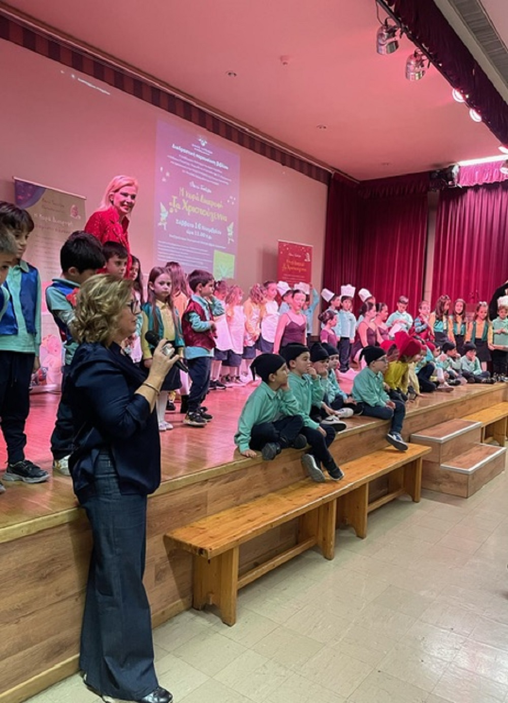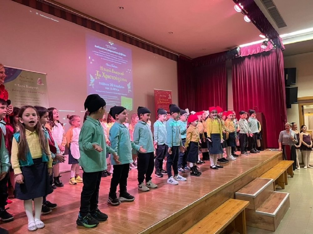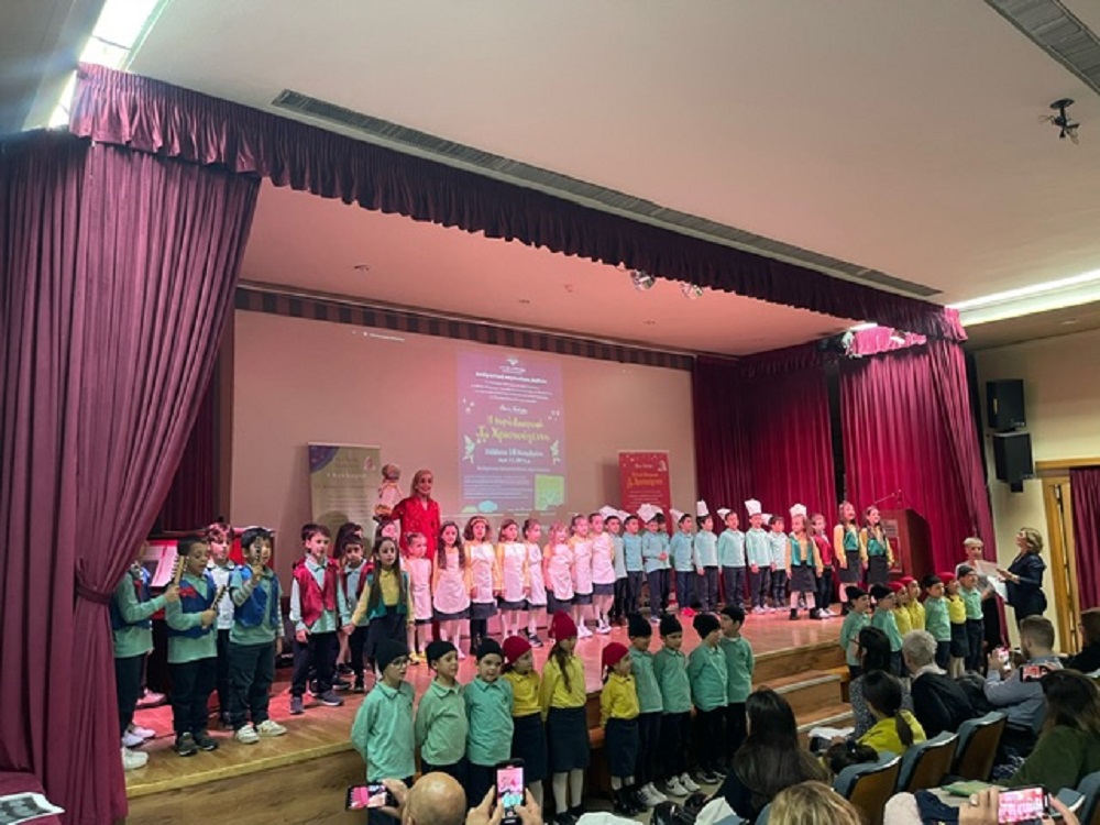 Στο πλαίσιο του Εργαστηρίου Δεξιοτήτων με θέμα «Διατροφή» οι μαθητές/τριες της Α’ Τάξης του Δημοτικού Σχολείου μας με όχημα τον λόγο, την κίνηση και το τραγούδι πήραν μέρος στη διαδραστική παρουσίαση του παραμυθιού «Η κυρά – Διατροφή τα Χριστούγεννα» της συγγραφέα κ. Λητώς Τσακίρη που πραγματοποιήθηκε το Σάββατο, 16 Νοεμβρίου 2024, στο Χατζηγιάννειο Δημοτικό Πνευματικό Κέντρο της Λάρισας. Με πολύ κέφι και μεράκι, αφού επεξεργάστηκαν στην τάξη το παραμύθι και ταξίδεψαν με τους ήρωες στις παραδοσιακές χριστουγεννιάτικες συνταγές, παρουσίασαν στους θεατές δράσεις εμπνευσμένες από την ιστορία του βιβλίου, τραγούδησαν τα κάλαντα και ευχήθηκαν σε όλους τα φετινά Χριστούγεννα να γεμίσουν με γεύσεις και μυρωδιές της παράδοσής μας!
