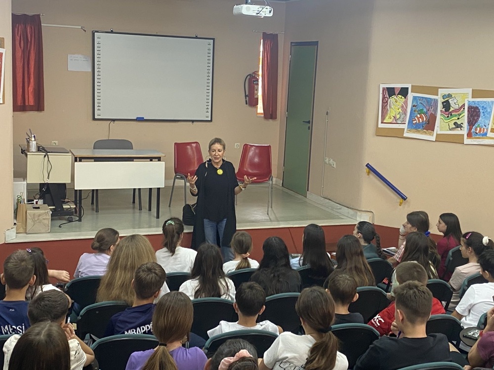 Οι μαθητές και οι μαθήτριες της ΣΤ΄ Τάξης του Δημοτικού Σχολείου μας υποδέχτηκαν με χαρά την Παρασκευή, 9 Μαΐου 2025, τη συγγραφέα Λένα Διβάνη. Αφορμή στάθηκε το βιβλίο της «Ραντεβού με τη βασίλισσα», του οποίου η κεντρική ηρωίδα είναι η Αμαλία, ένα μικρό κορίτσι, που το όνειρό του είναι να γίνει δασκάλα στα χρόνια της βασιλείας του Όθωνα και της Αμαλίας.
