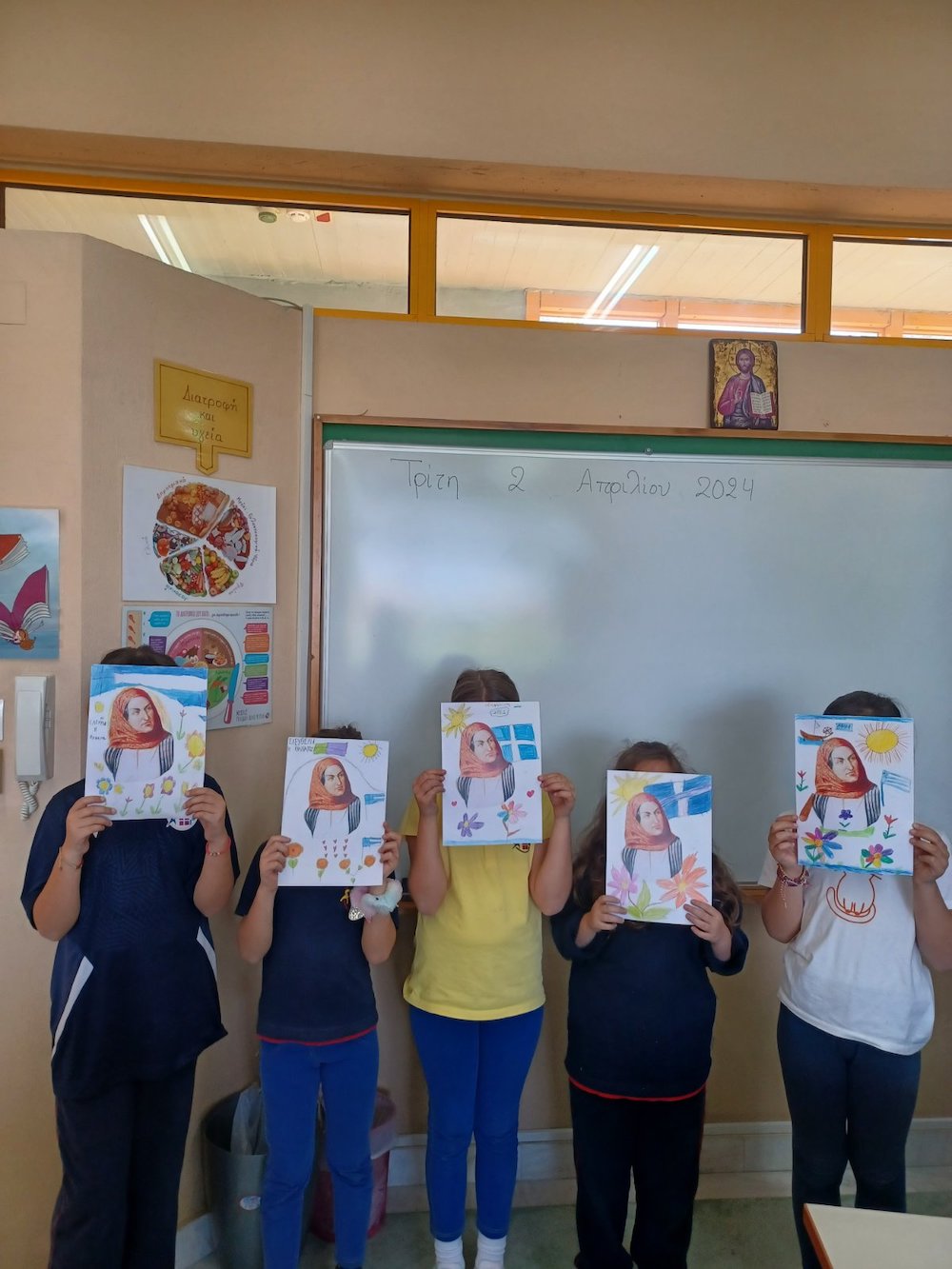 Στο μάθημα των Εικαστικών παρατήρησαν έργα σημαντικών Ελλήνων και ξένων ζωγράφων εμπνευσμένα από τους αγώνες του έθνους και φιλοτέχνησαν το πορτρέτο του ιστορικού προσώπου με το οποίο επέλεξαν να ασχοληθούν πιο επισταμένα.Έμαθαν και τραγούδησαν κλέφτικα τραγούδια και έψαλαν τον Ακάθιστο Ύμνο στο μάθημα της Μουσικής. Στη Φυσική Αγωγή χόρεψαν λεβέντικους δημοτικούς χορούς και υποδύθηκαν ρόλους σε αυτοσχέδιες δράσεις με πρωταγωνιστές/τριες τους ήρωες και τις ηρωίδες την ώρα της Θεατρικής Αγωγής.
