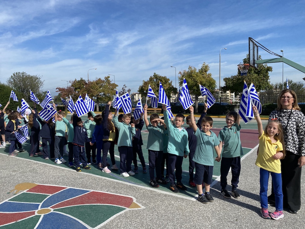 Το εθνικό μας σύμβολο, την Ελληνική Σημαία, τίμησαν στο Δημοτικό Σχολείο των Εκπαιδευτηρίων μας οι μαθητές και οι μαθήτριες όλων των τάξεων και οι εκπαιδευτικοί. Μετά την πρωινή προσευχή, έγινε η έπαρση της Σημαίας και όλοι/-ες μαζί έψαλαν με κατάνυξη τον Εθνικό Ύμνο.