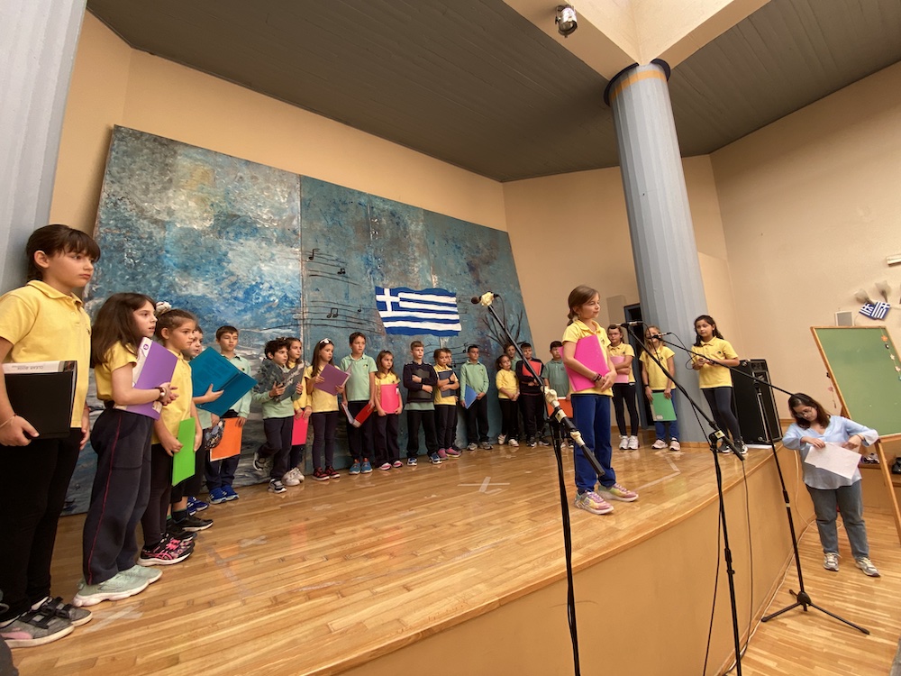 Στη συνέχεια, πραγματοποιήθηκε η τελετή παράδοσης της Σημαίας στον Σημαιοφόρο και τους/τις παραστάτες/-τριες, οι οποίοι/-ες θα εκπροσωπήσουν το Σχολείο μας στην παρέλαση της 28ης Οκτωβρίου. Ακολούθησε η εκφώνηση του πανηγυρικού λόγου από τη δασκάλα της ΣΤ’ Τάξης, Κα Γιαλιτάκη Μαρία, η οποία τόνισε το πατριωτικό φρόνημα των προγόνων μας και παρότρυνε τους μαθητές/-τριες της μελλοντικής γενιάς να επιδείξουν το ίδιο αγωνιστικό πνεύμα και ήθος μ’ αυτούς.