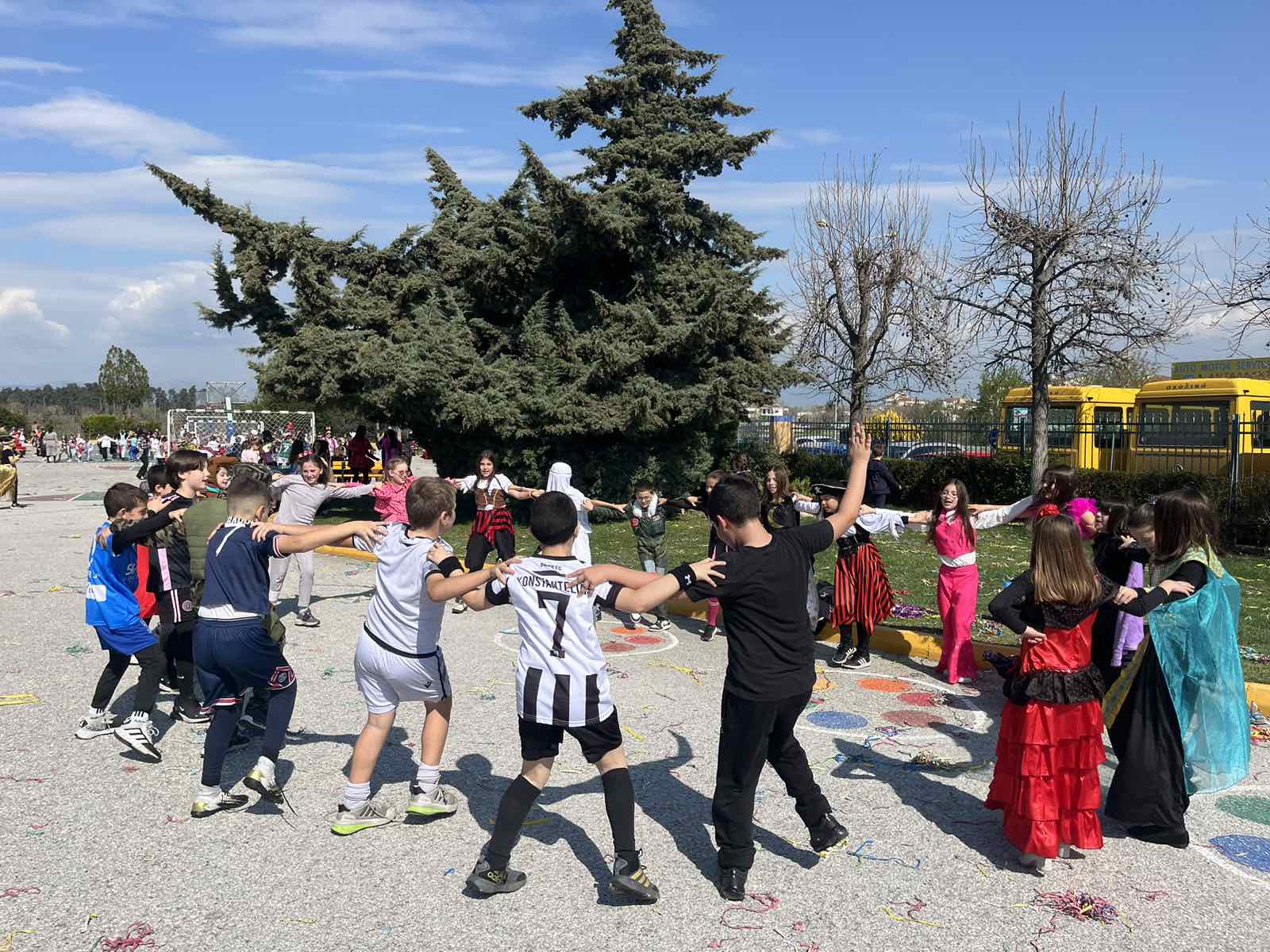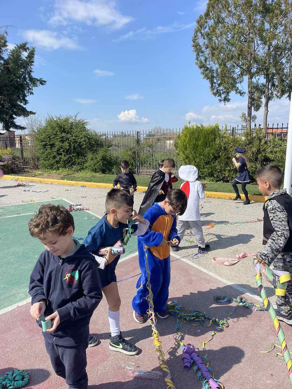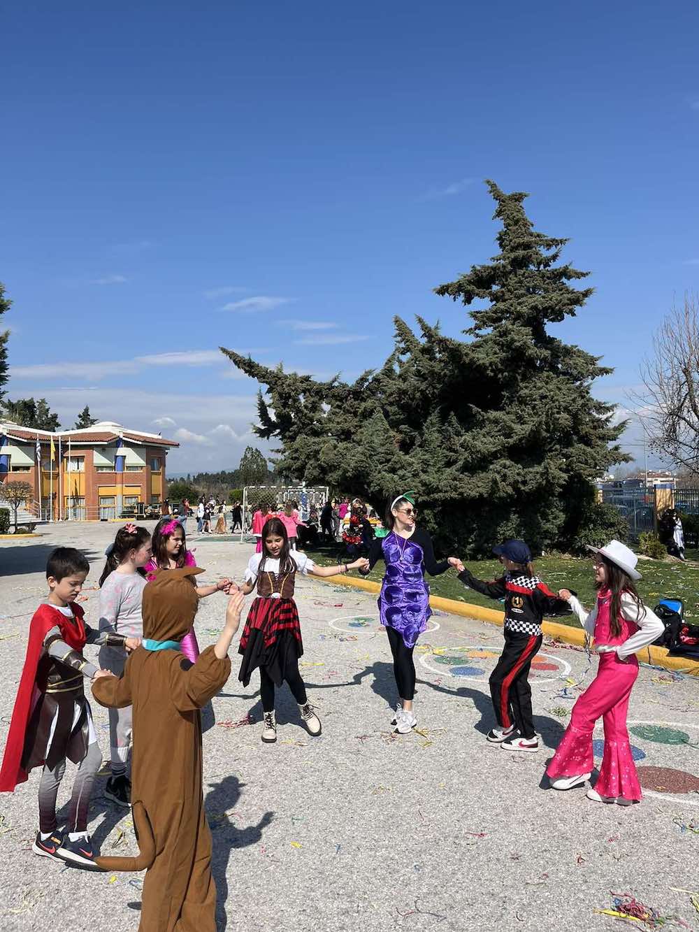 Χρώματα, μελωδίες, γέλια και πειράγματα πλημμύρισαν την ανοιξιάτικη αυλή του Δημοτικού Σχολείου και του Νηπιαγωγείου των Εκπαιδευτηρίων μας την Παρασκευή, 15 Μαρτίου! Μαθητές/τριες και εκπαιδευτικοί γιόρτασαν τα κούλουμα με σαρακοστιανά εδέσματα, παραδοσιακούς και σύγχρονους χορούς, αποκριάτικα τραγούδια, γαϊτανάκι, ομαδικά παιχνίδια και δραστηριότητες στο προαύλιο. Συμμετέχοντας με όλες τις αισθήσεις τους κατανόησαν με βιωματικό τρόπο όλα όσα γνώρισαν με αφιερώματα και προβολές στις Τάξεις για τα αποκριάτικα έθιμα του τόπου μας. Η χαρά όλων για τις όμορφες στιγμές που βίωσαν εκφράστηκε με τις ευχές για “Καλές Απόκριες” και “Καλή Σαρακοστή”!