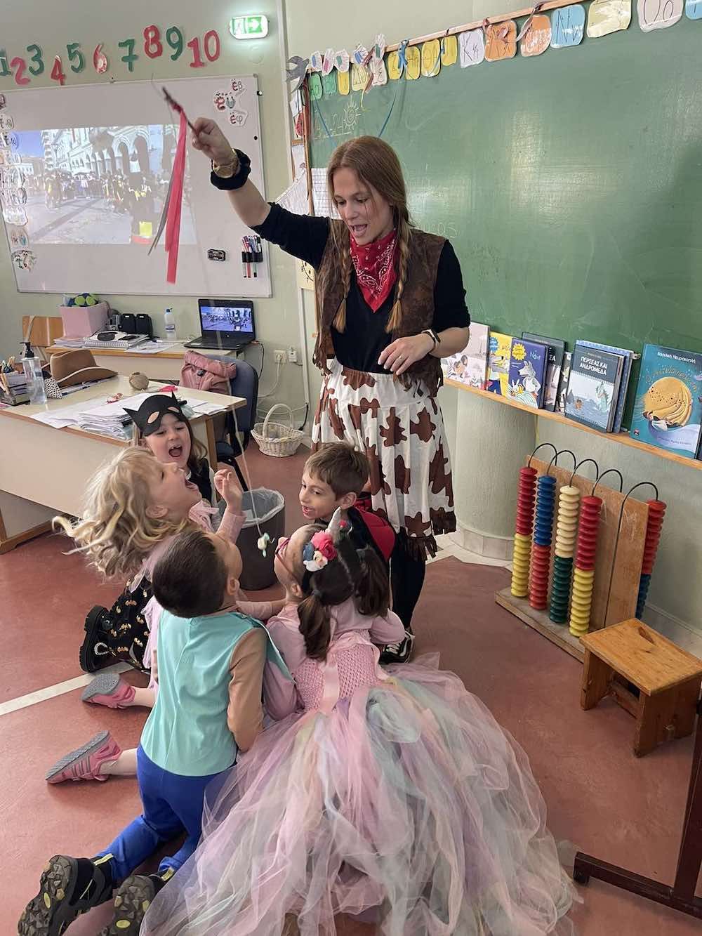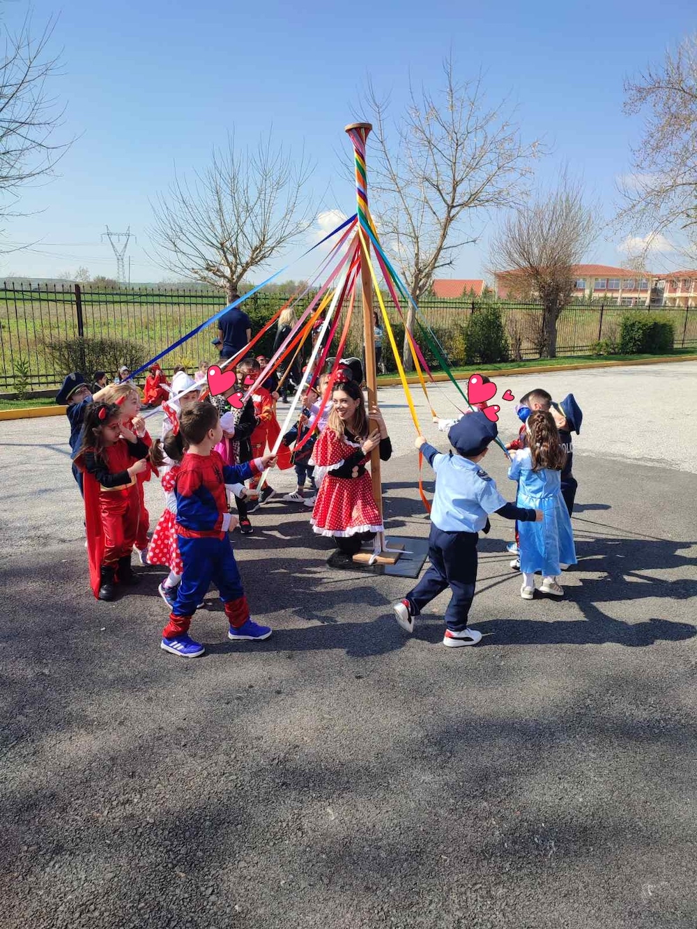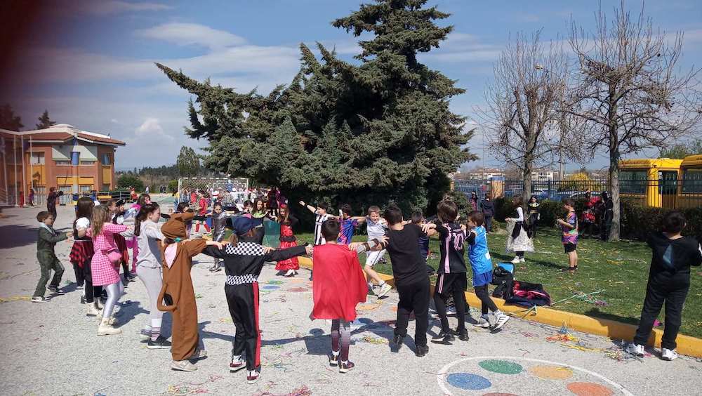 Χρώματα, μελωδίες, γέλια και πειράγματα πλημμύρισαν την ανοιξιάτικη αυλή του Δημοτικού Σχολείου και του Νηπιαγωγείου των Εκπαιδευτηρίων μας την Παρασκευή, 15 Μαρτίου! Μαθητές/τριες και εκπαιδευτικοί γιόρτασαν τα κούλουμα με σαρακοστιανά εδέσματα, παραδοσιακούς και σύγχρονους χορούς, αποκριάτικα τραγούδια, γαϊτανάκι, ομαδικά παιχνίδια και δραστηριότητες στο προαύλιο. Συμμετέχοντας με όλες τις αισθήσεις τους κατανόησαν με βιωματικό τρόπο όλα όσα γνώρισαν με αφιερώματα και προβολές στις Τάξεις για τα αποκριάτικα έθιμα του τόπου μας. Η χαρά όλων για τις όμορφες στιγμές που βίωσαν εκφράστηκε με τις ευχές για “Καλές Απόκριες” και “Καλή Σαρακοστή”!