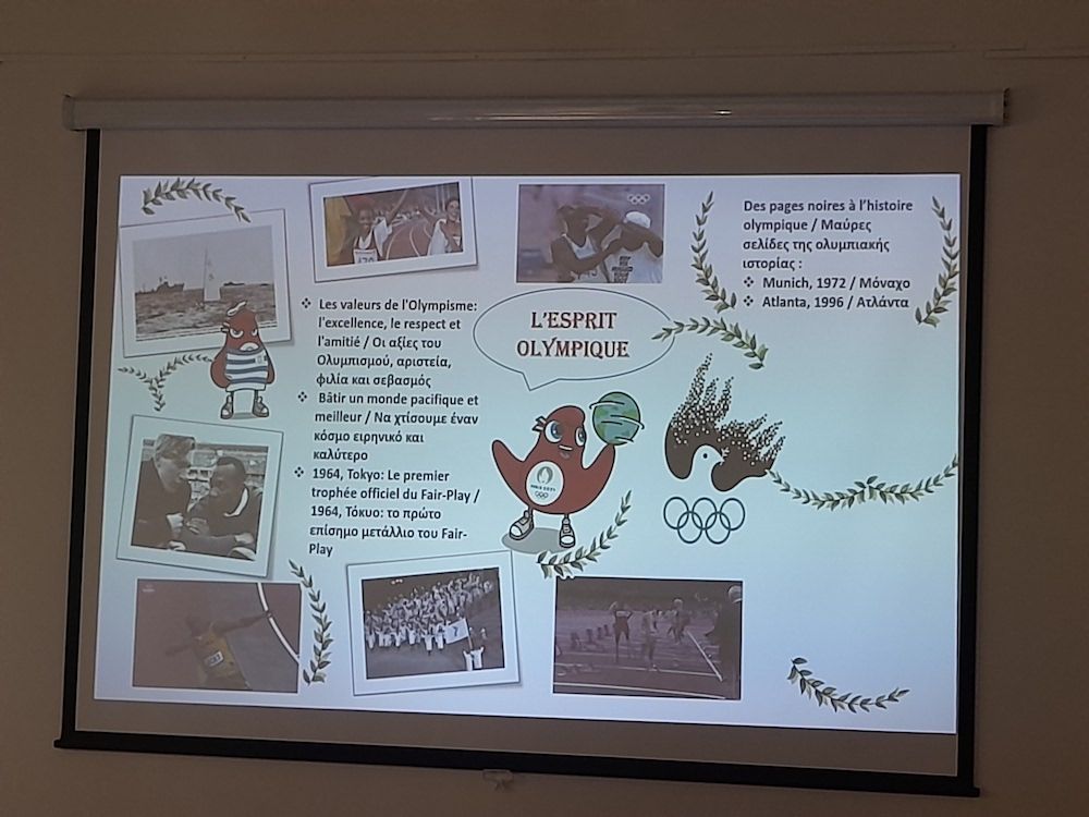 Με την ευκαιρία της πραγματοποίησης των φετινών Ολυμπιακών Aγώνων στο Παρίσι τα παιδιά παρακολούθησαν μια εξαιρετική παρουσίαση για την ιστορία των Αγώνων από την Αρχαιότητα ως σήμερα! Ενημερώθηκαν για τις μασκότ, τα σύμβολα, τις πιο σπουδαίες στιγμές των Αγώνων καθώς επίσης και για τον Ολυμπιακό Ύμνο και την αφή της Φλόγας. Στο τέλος, με ενθουσιασμό πήραν μέρος σε ένα διαδραστικό παιχνίδι γνώσεων στο οποίο πέτυχαν σπουδαίο σκορ!