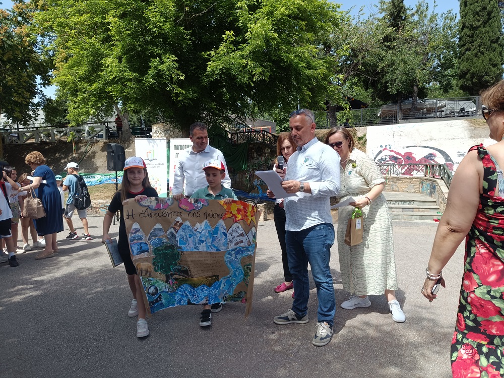 Οι μαθητές και οι μαθήτριες της Γ΄ Τάξης διακρίθηκαν για τα ομαδικά τους εικαστικά έργα και αντιπροσωπεία μαθητών παραβρέθηκε στην εκδήλωση βράβευσης στην κοίτη του Πηνειού. Εκεί τα παιδιά είχαν την ευκαιρία να στείλουν το δικό τους μήνυμα για την προστασία του περιβάλλοντος και να παραλάβουν Ειδικό Έπαινο από τον δήμαρχο της πόλης, κ. Μαμάκο και την Διευθύντρια Πρωτοβάθμιας Εκπαίδευσης Λάρισας, κ. Καραγιώργου.