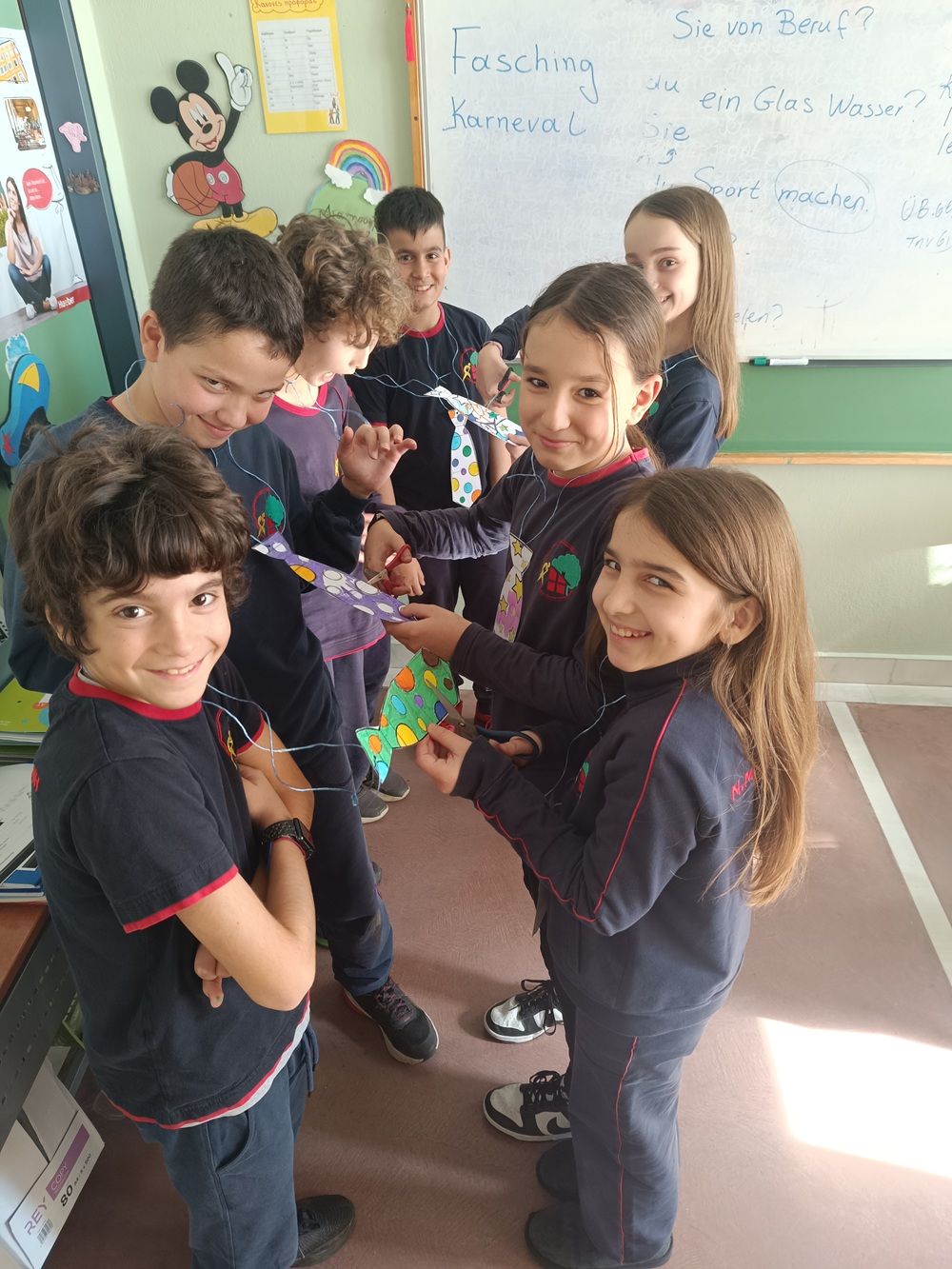Οι μαθητές και οι μαθήτριες της Ε΄ Τάξης του τμήματος Γερμανικών στο πλαίσιο της επαφής με τον πολιτισμό των γερμανόφωνων χωρών γνώρισαν ένα από τα πλέον διαδεδομένα έθιμα, το “Κόψιμο της Γραβάτας”, και το προσέγγισαν βιωματικά δημιουργώντας τις δικές τους γραβάτες και αναπαριστάνοντας το έθιμο Weiberfastnacht.